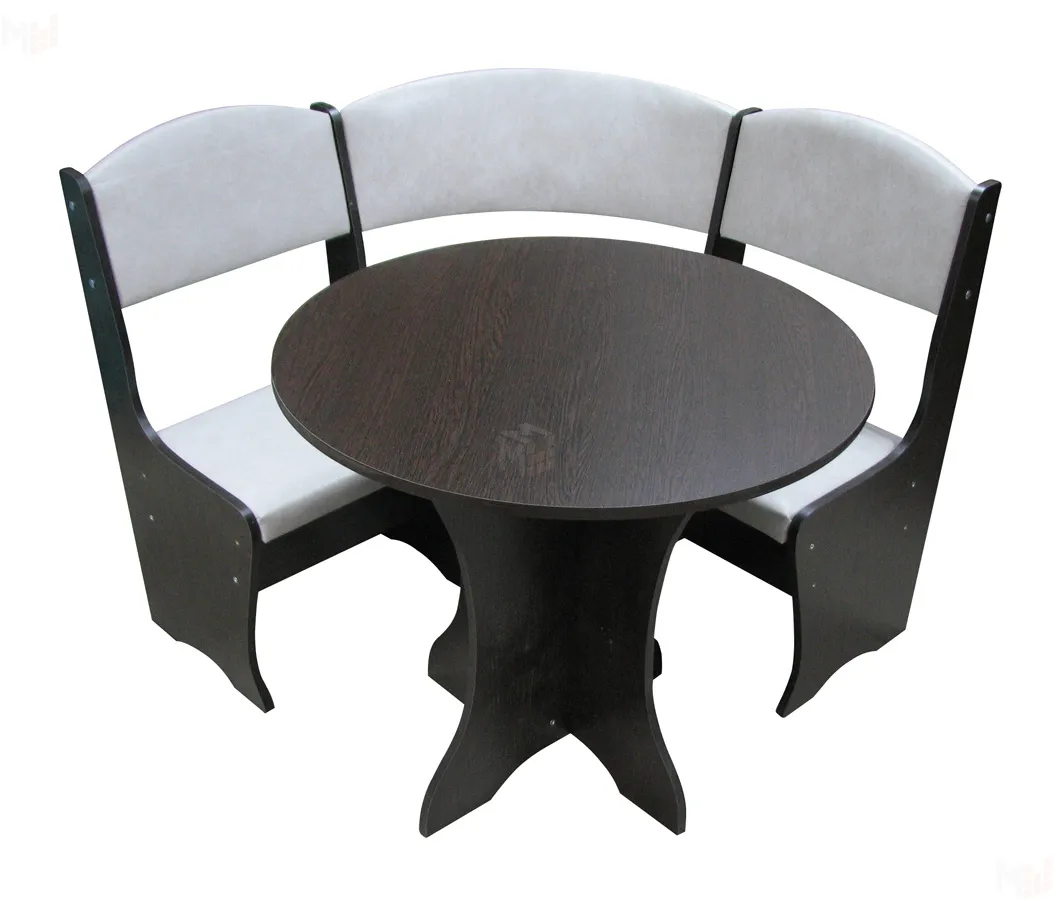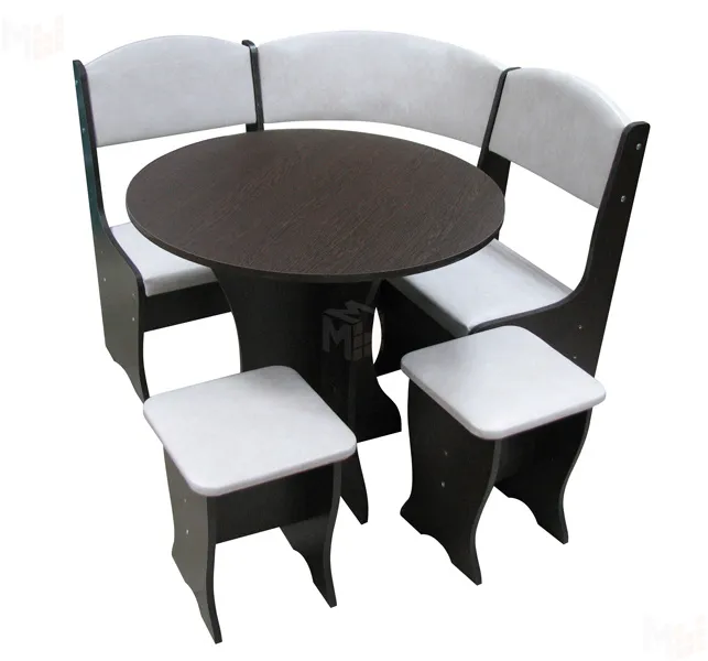 Удобный и вместительный кухонный уголок с нишами для мелких вещей под сидениями. Кухонный уголок Весна мини - это хит продаж. В городе есть много квартир, имеющих небольшие кухни. Именно для таких небольших помещений мы предлагаем приобретать кухонный уголок Весна мини. Он является отличным выбором для малогабаритной кухни, так как имеет размеры всего 101*101 см. В комплект входит угловая скамья, круглый стол и 2 табурета. Весна мини имеет вместительные ящики под сидениями для размещения мелких вещей. В качестве обивки используется кожзам, что очень актуально на кухне, достаточно протереть тряпочкой и все загрязнения исчезнут.