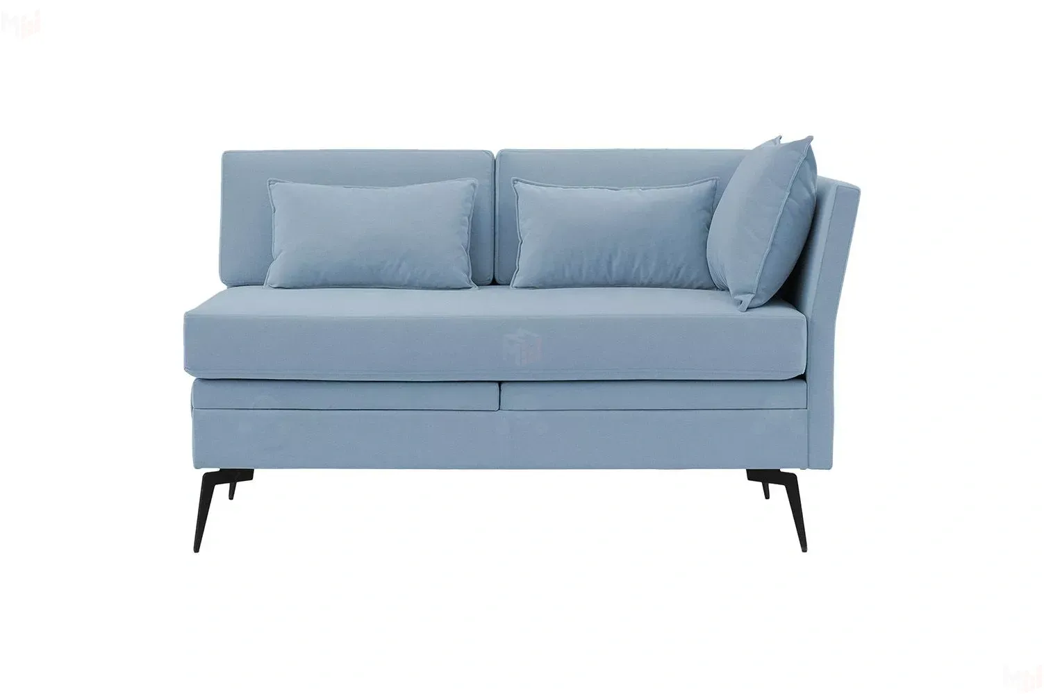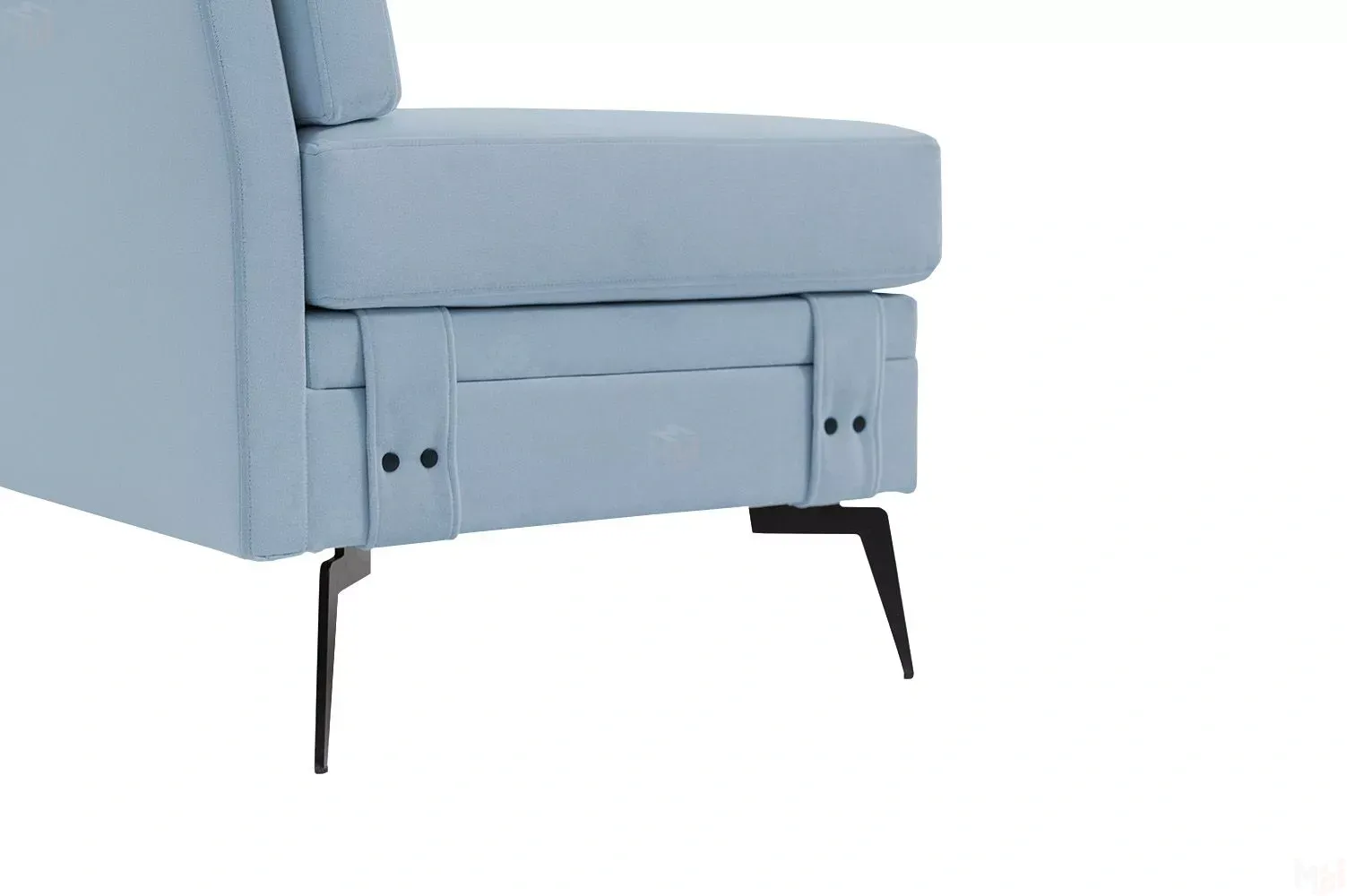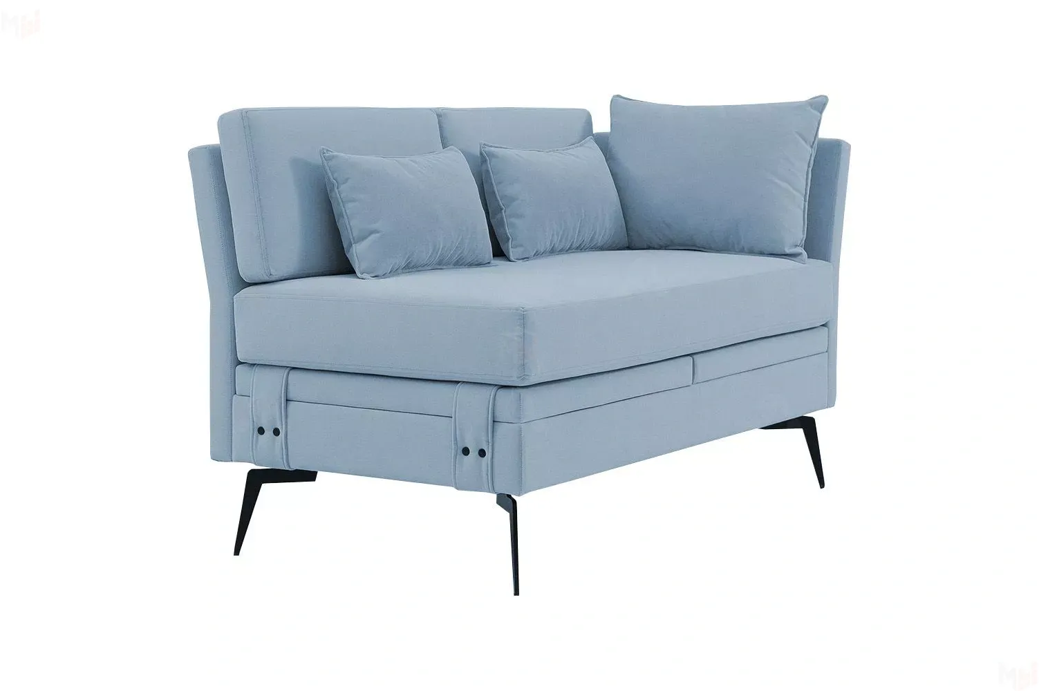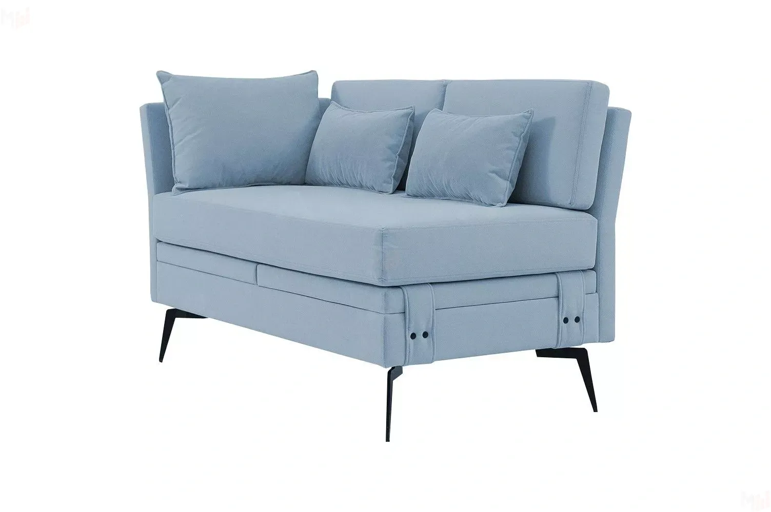 Достоинством данной модели является наличие мягкого подлокотника, который обеспечивает комфортную и уютную посадку и отдых. А неповторимый дизайн данной модели придают высокие металлические опоры, благодаря которым диван смотрится легко и воздушно, а также декоративные пуговицы в цвет ножек.