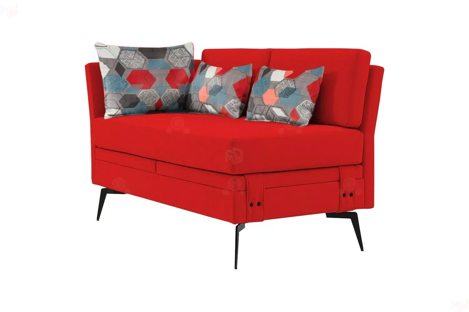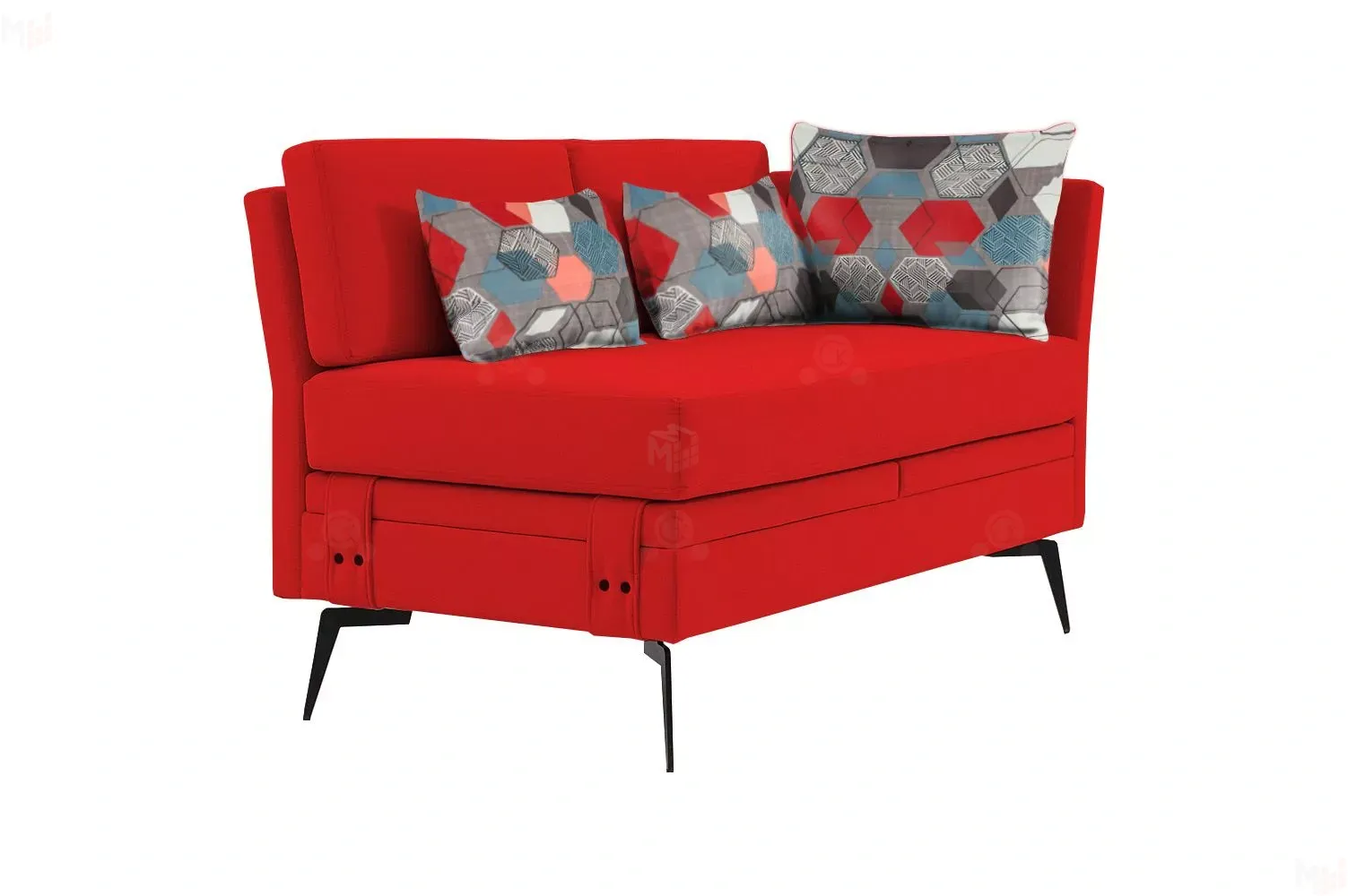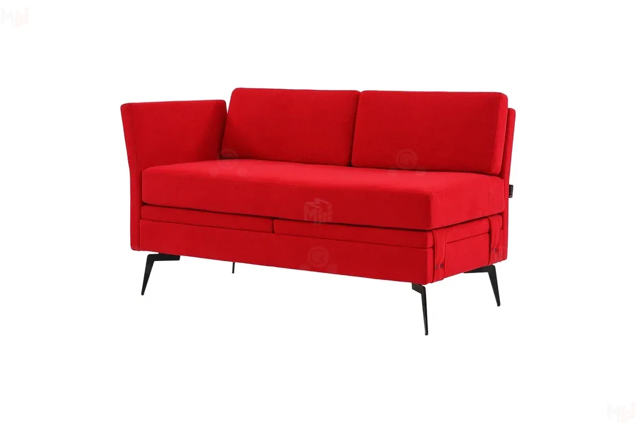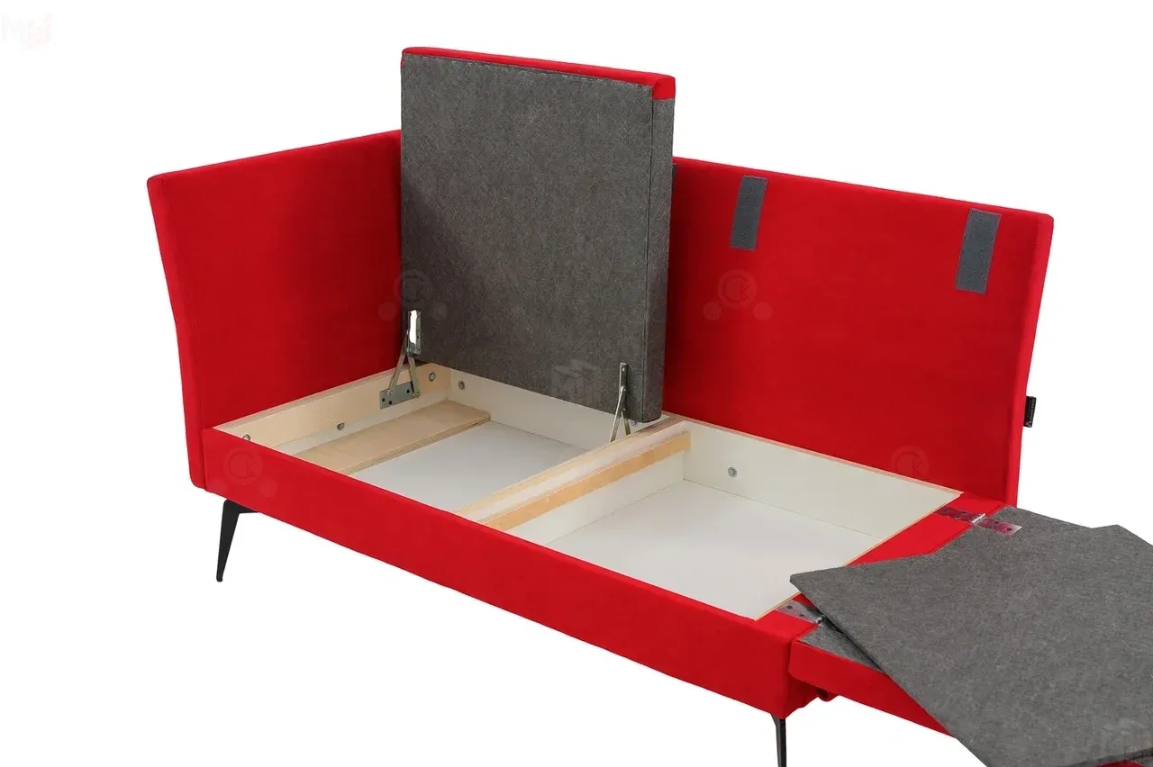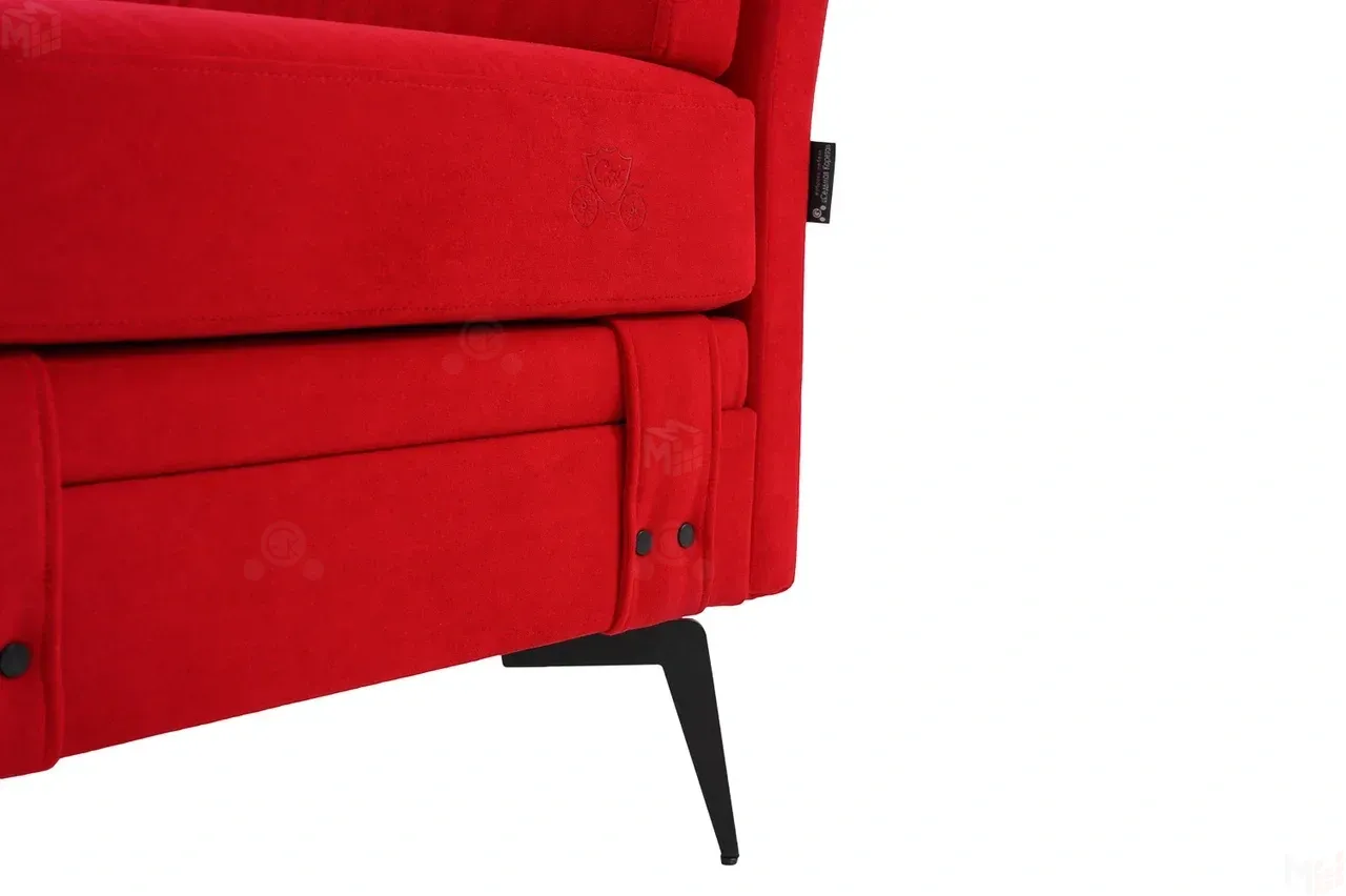 Достоинством данной модели является наличие мягкого подлокотника, который обеспечивает комфортную и уютную посадку и отдых. А неповторимый дизайн данной модели придают высокие металлические опоры, благодаря которым диван смотрится легко и воздушно, а также декоративные пуговицы в цвет ножек.