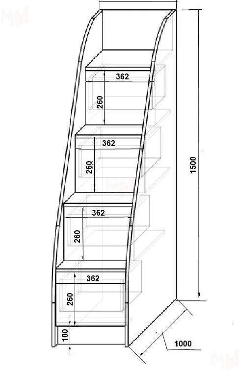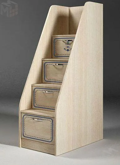 Лестница-комод серии Капитан производится в виде тумбы с ящиками для хранения, которые располагаются под каждой ступенью.