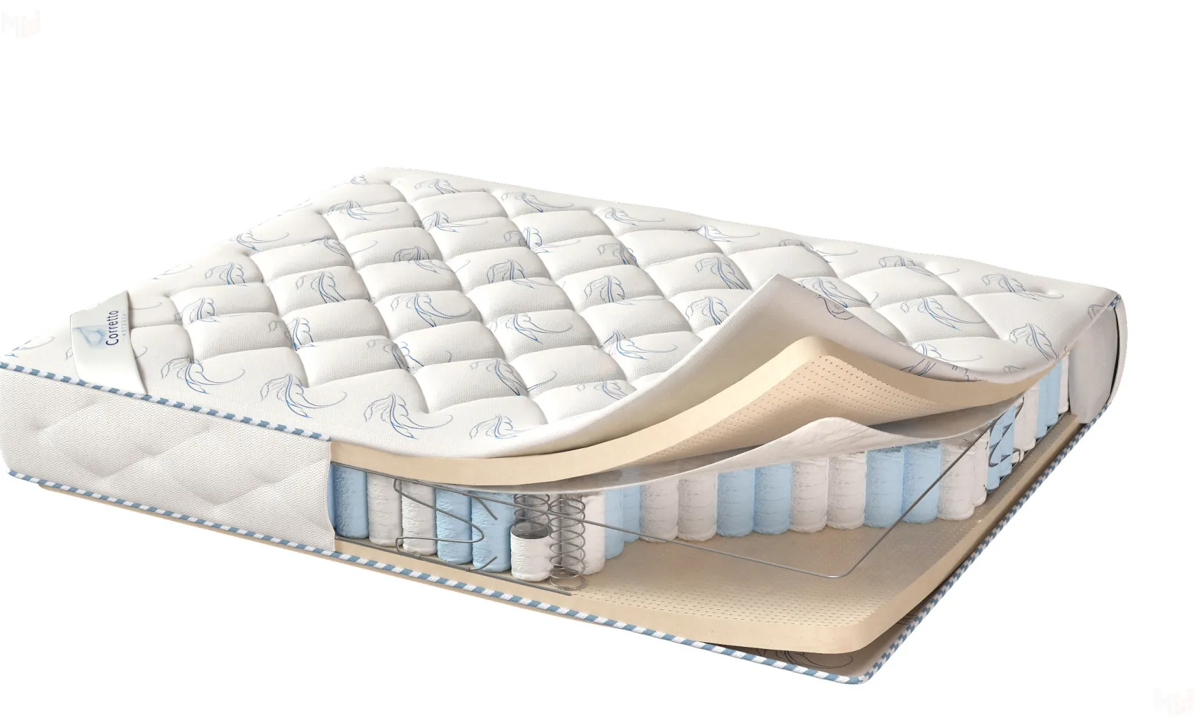 Характеристики: Cрок службы 10 лет Нагрузки до 120 кг на спальное место Высота 18 см <Блок независимые пружины Pocket Spring с усилением Состав искусственный латекс 20 мм, спанбонд
