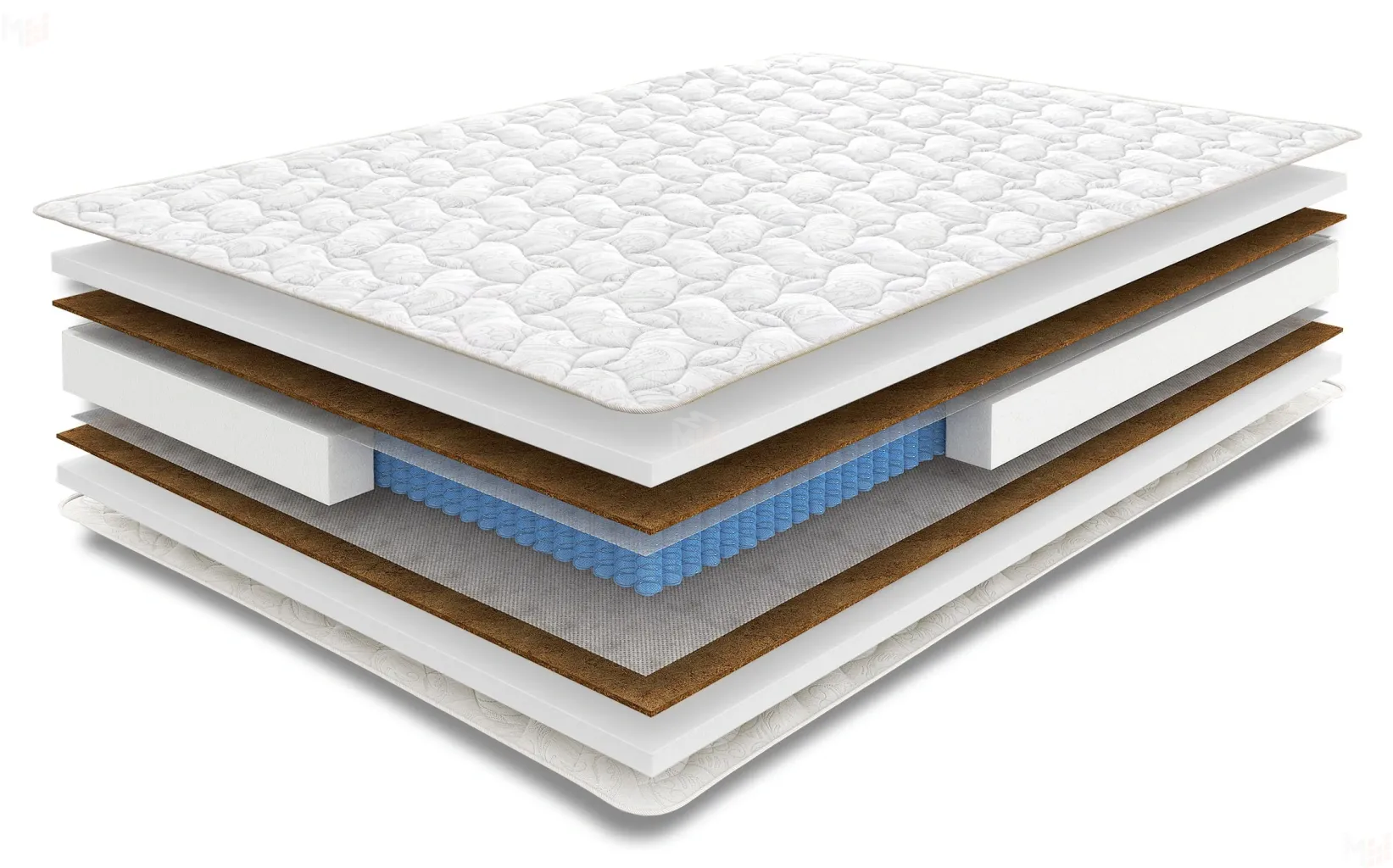 Эта модель матраса объединяет в себе самые безопасные наполнители: кокосовая койра, ортопена и износостойкий спанбонд. Кокосовая плита создает ровную поверхность средней жесткости, а эластичный латекс, вкупе с высококачественным трикотажем. Их комбинация с каждой стороны матраса дарит особенное ощущение комфорта.