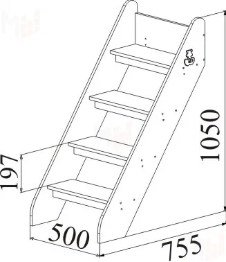 длина 500 мм, ширина 755 мм, высота 1050 мм