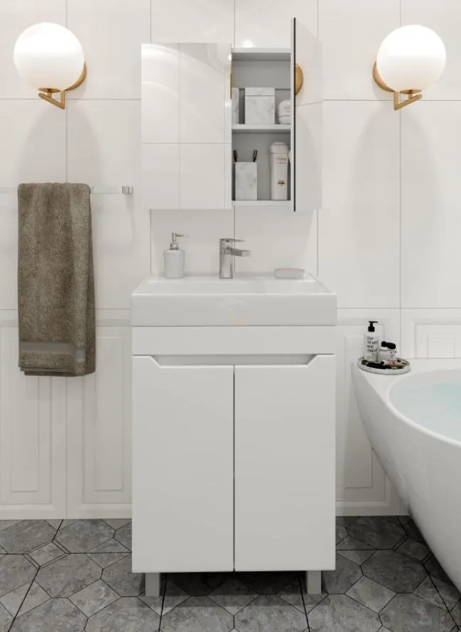 Элегантный и эргономичный шкафчик с зеркалом МЕЧТА от российской марки АЙСБЕРГ предназначен для компактных санузлов.