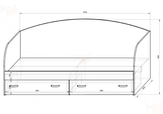 - кровать низкая ФКК-13/7 с бортиком 13/17 и текстилем. Размер под матрас - 1900х800 мм (приобретается отдельно). Основанием является - лист ДВП, под ним - два ящика на роликовых направляющих.