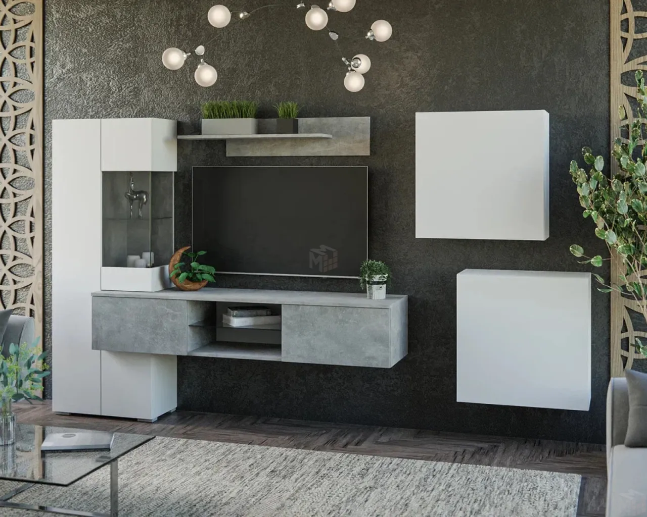 Гостиная «Минель» станет главным акцентом для нестандартного и прогрессивного интерьера. Современный, креативный, но вместе с тем, функциональный и компактный дизайн гостиной позволяет сохранить максимум свободного пространства и учитывать запросы всех жильцов.Гостиная «Минель» имеет необычную конфигурацию и представлена следующими элементами: два навесных шкафчика в форме квадрата, верхняя полка открытого типа, шкаф-витрина вертикального расположения и навесной шкаф горизонтального расположения.Гладкий фасад гостиной «Минель» лишен привычной фурнитуры в виде ручек. На замену им пришли магнитные толкатели, благодаря которым дверцы открываются без особых усилий за счет выталкивающего механизма. Фасады без ручек облегчают уход за мебелью и смотрятся аккуратно.