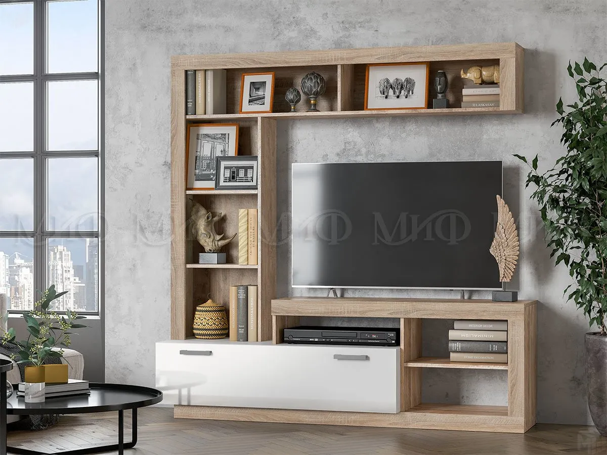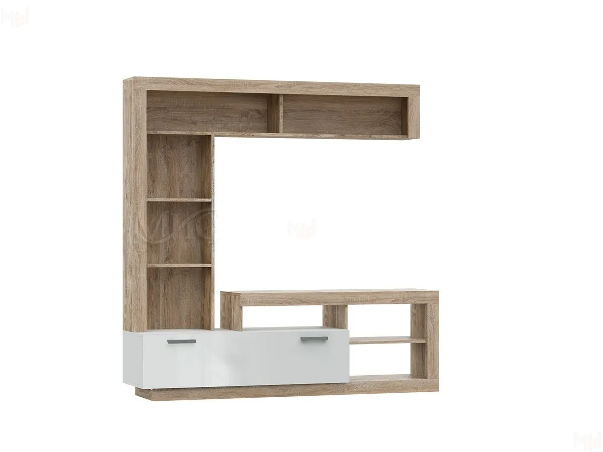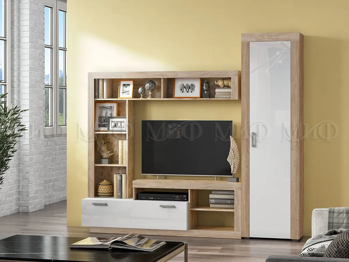 Мини-стенка Ангара выполнена в цвете дуб сонома/белый глянец.