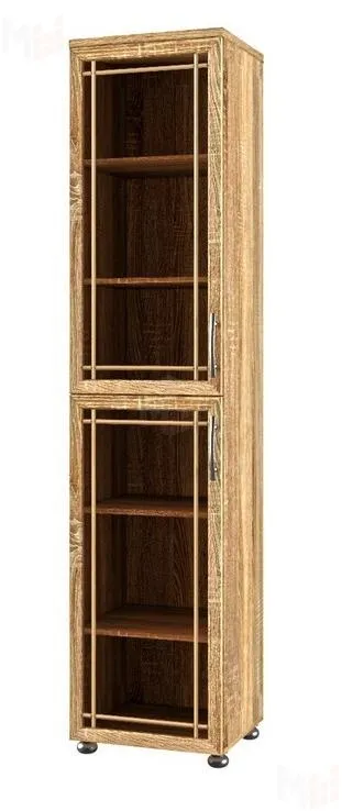 За распашными стеклянными дверьми в профиле МДФ - пять полок. -