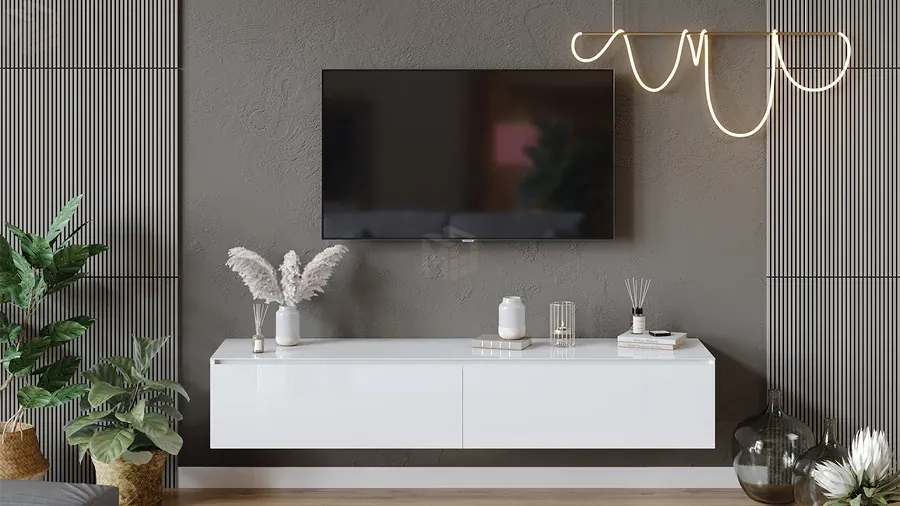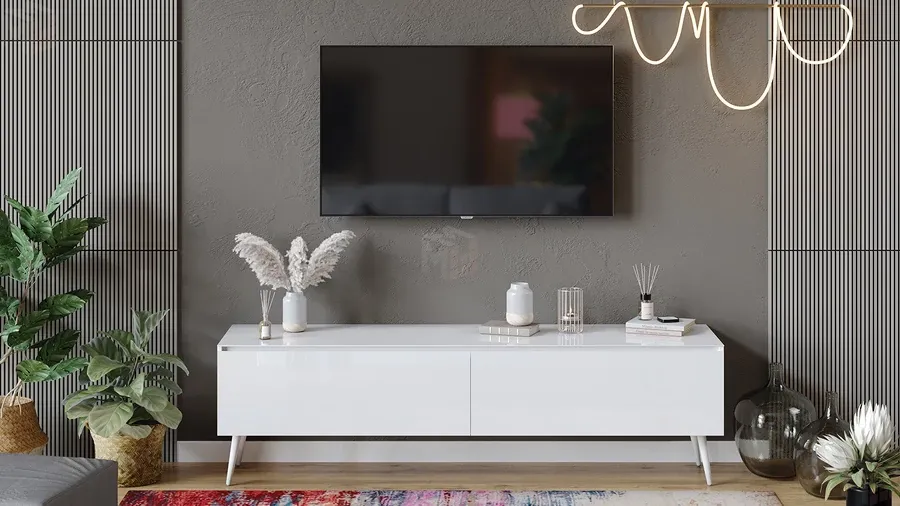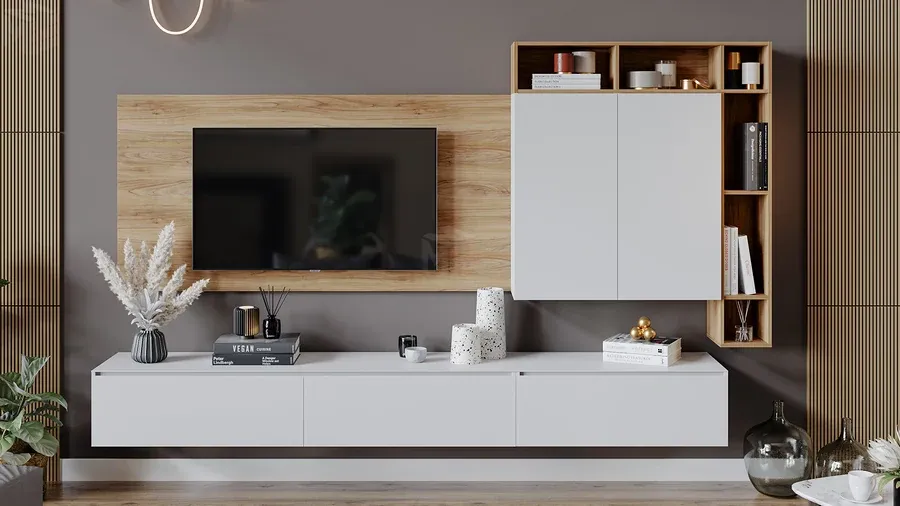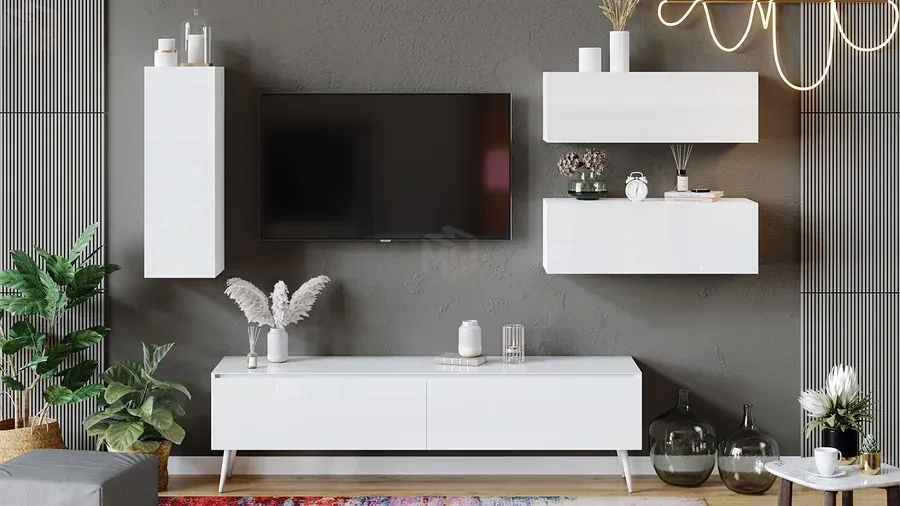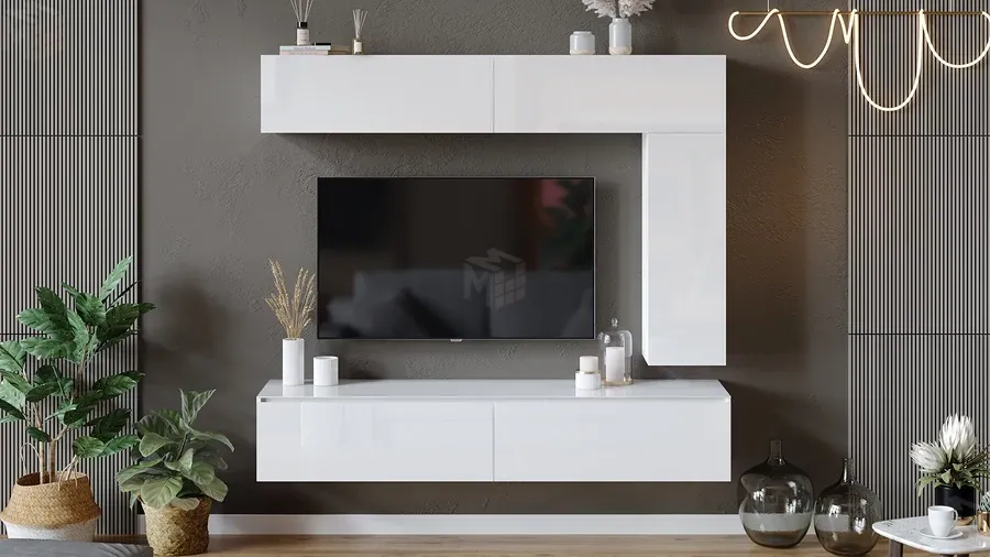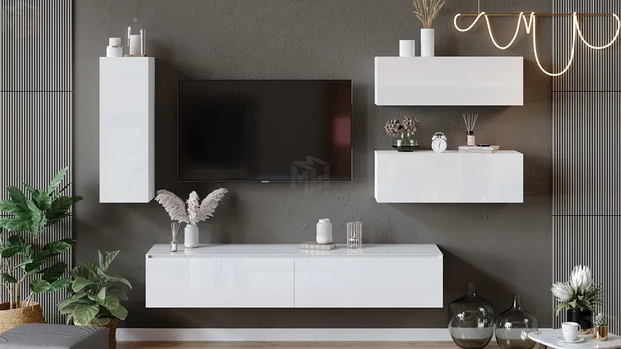 Модульная гостиная Глосс Белый глянец, Стекло Белый глянец, Яблоня Беллуно