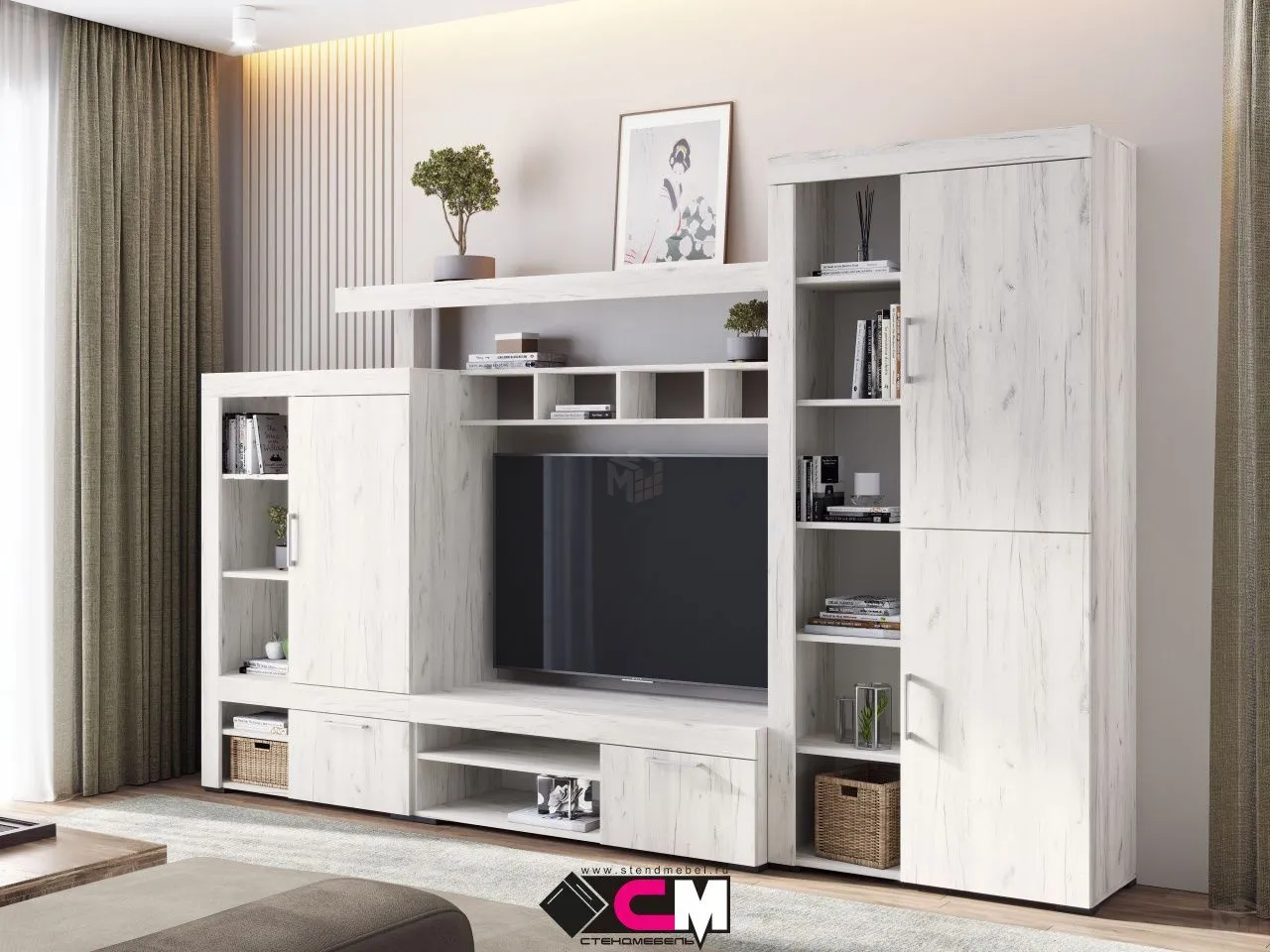 Гостиная Гранд 1 выполнена в оригинальном стиле, выраженном в четких прямолинейных формах, совершенных пропорциях и великолепном цвете белого дуба. Светлые тона этой мебельной коллекции уверенно вольются в интерьер любого стиля благодаря главной ставке: форма не должна затмевать содержания. Кроме этого, широкая линейка этой серии позволит оформить в едином стиле и гостиную, и спальню, и детскую комнату. -