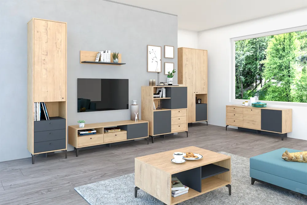 Ножки - металл. Выдвижные ящики на шариковых направляющих полного выдвижения. На створках с ручками петли с доводчиками, на створках без ручек - система "push-to-open". Сзади модулей находится дополнительная опора.