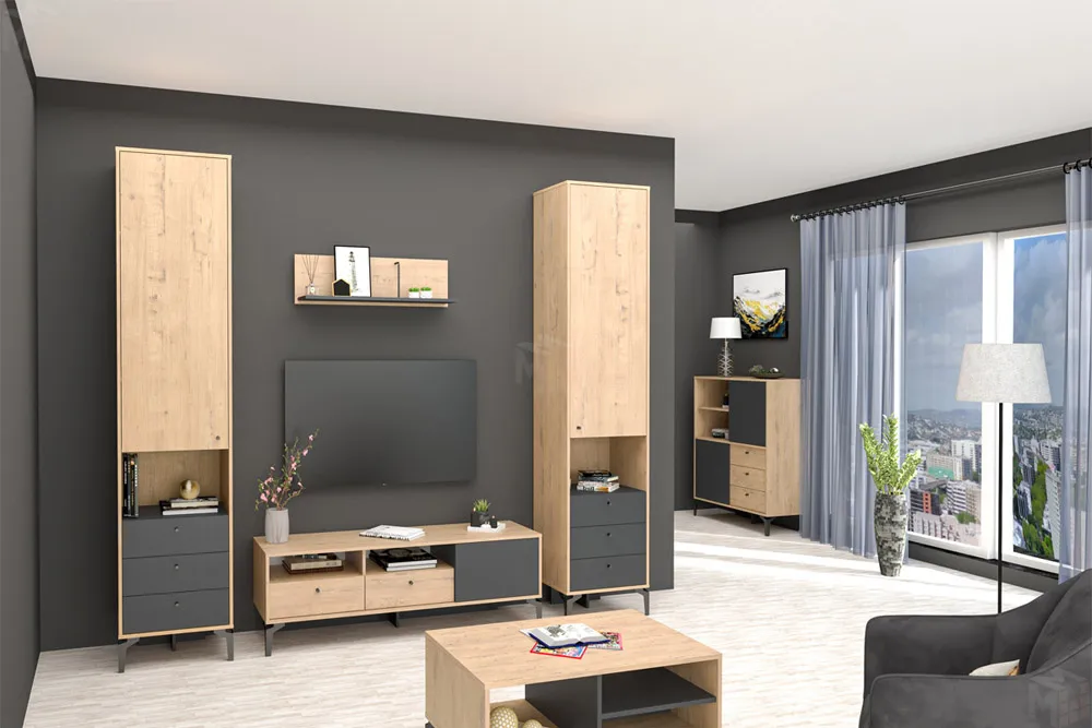 Мебель выполнена из ЛДСП Дуб бунратти/антрацит