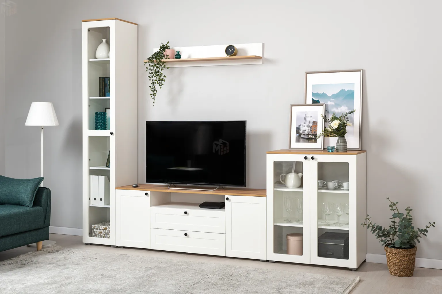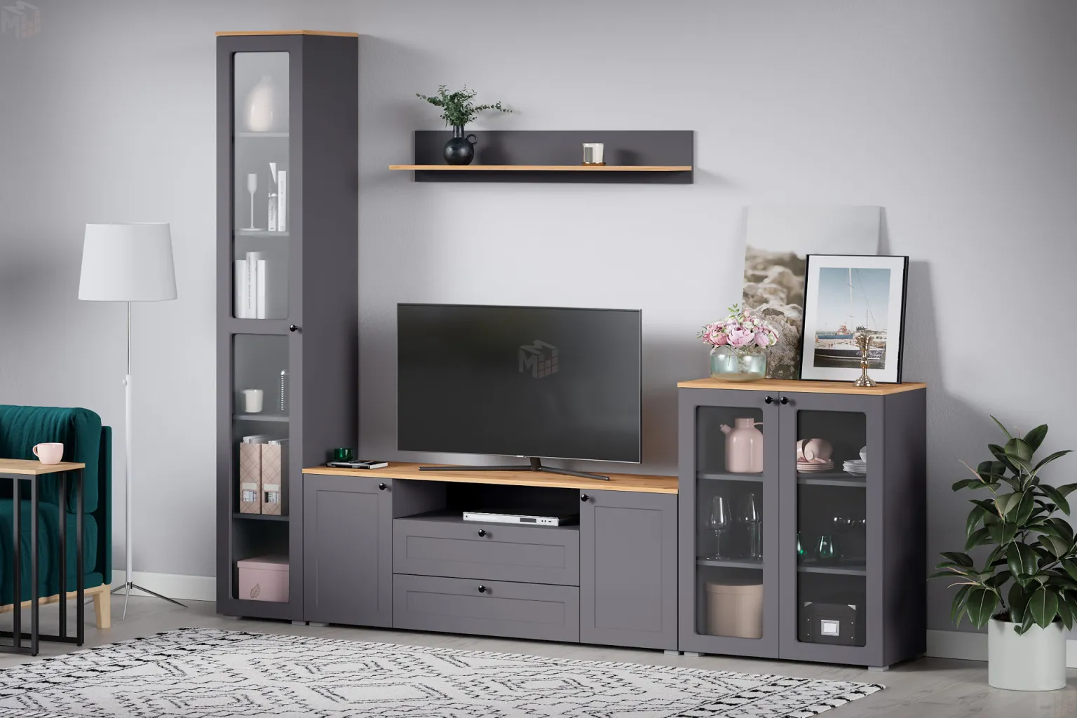 Гостиная Остин 1 в современном классическом стиле. Лаконичность, строгие линии, контрастная фурнитура, функциональность и элегантность – отличительные черты этой коллекции. Петли и направляющие c доводчиками обеспечивают удобство и комфорт.