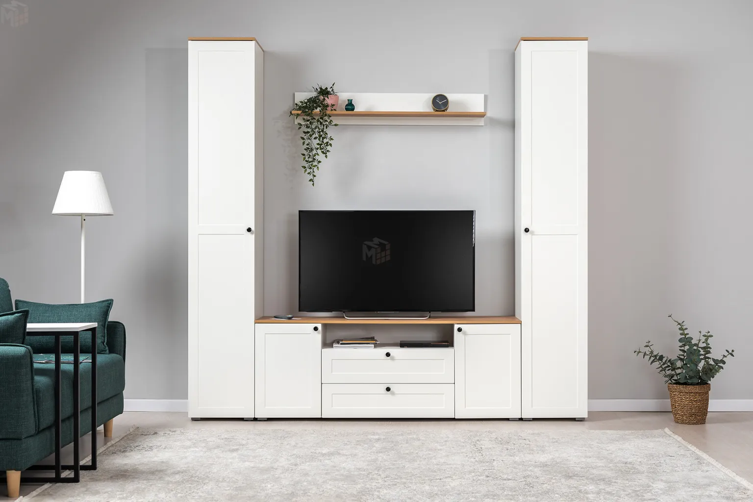 Гостиная Остин 2 в современном классическом стиле. Лаконичность, строгие линии, контрастная фурнитура, функциональность и элегантность – отличительные черты этой коллекции. Петли и направляющие c доводчиками обеспечивают удобство и комфорт.