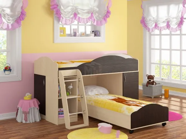 Модульная кровать-чердак Дюймовочка-5 представляет собой самодостаточный спальный комплекс, позволяющий собрать детский уголок,ы исходя из индивидуальных требований. Благодаря различным модулям и комплектующим, вы сможете подобрать уникальное спальное место для вашего ребенка. В комплект входит лестница с боковыми выдвижными ящиками. Прочная конструкция рассчитана на детей от 1 до 18 лет. Такая детская обеспечит разумную экономию пространства в вашем доме и полностью обеспечит выполнение всех многообразных функций детской и подростковой комнаты.