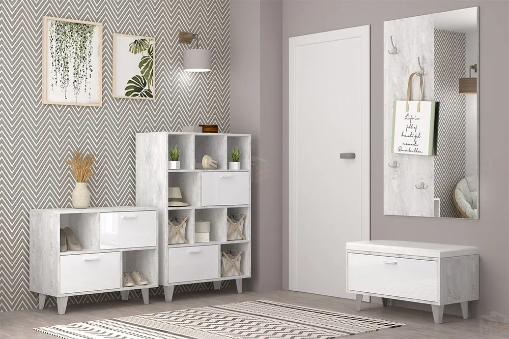 Модульная прихожая Эго Бетон Светлый/Белый Глянец Вариант 2