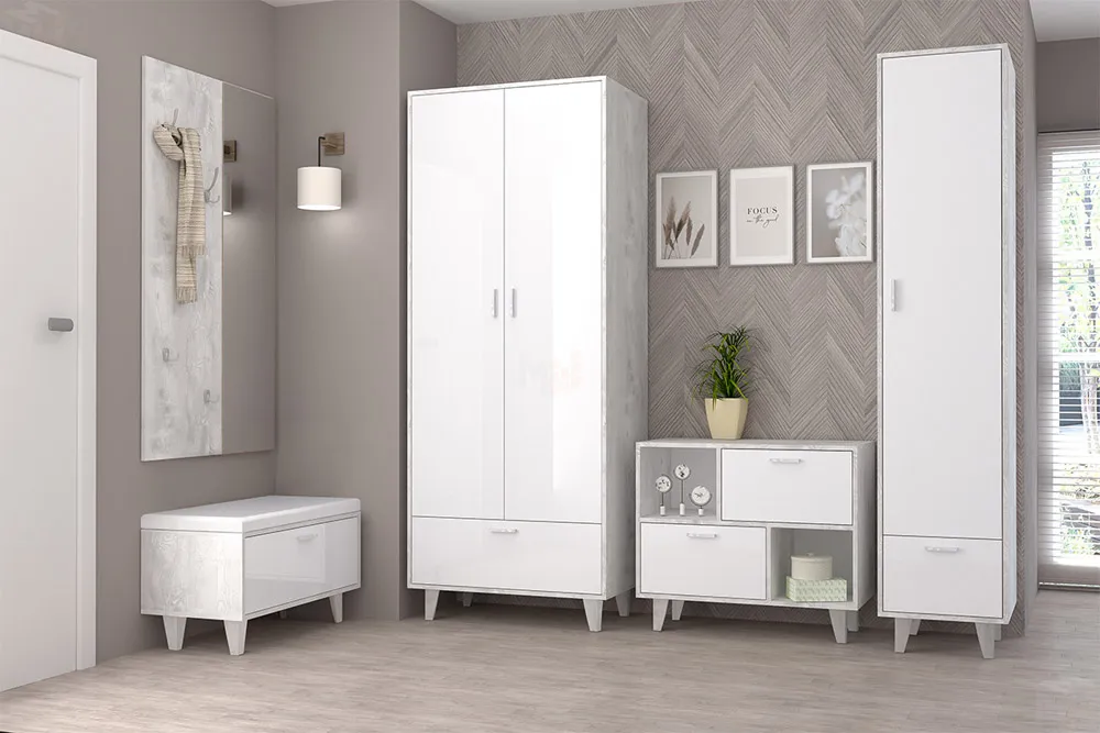 Модульная прихожая Эго Бетон Светлый/Белый Глянец Вариант 6