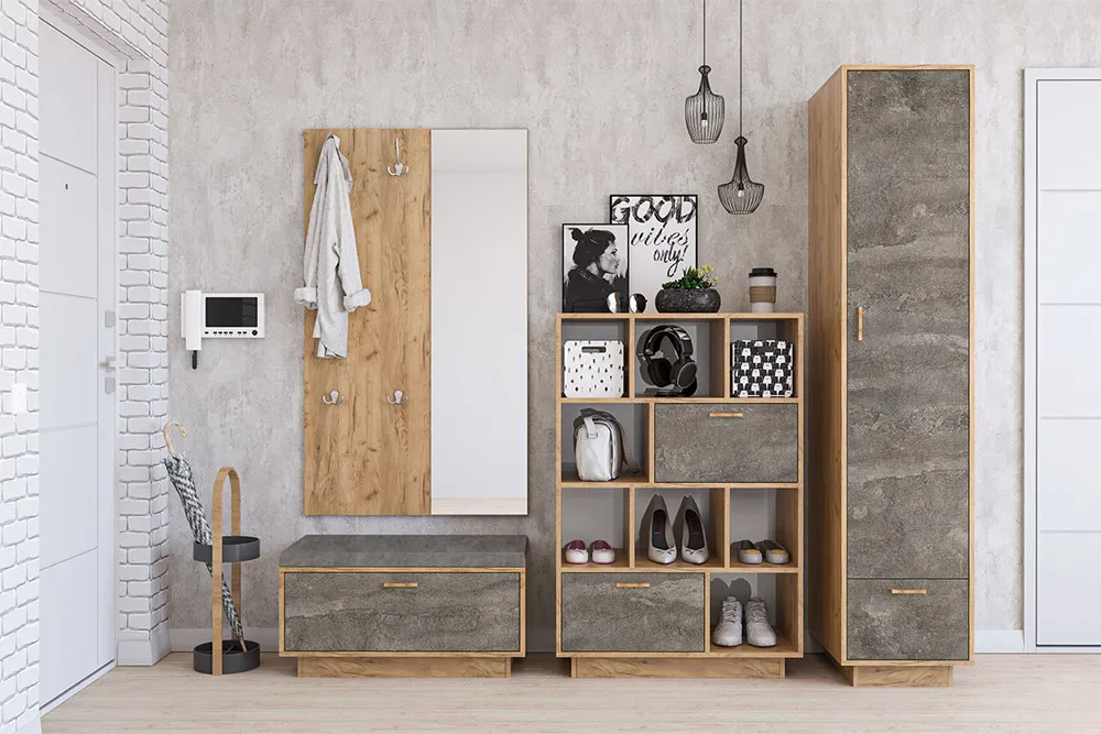 Модульная прихожая Эго Дуб Крафт/Камень Темный Вариант 3