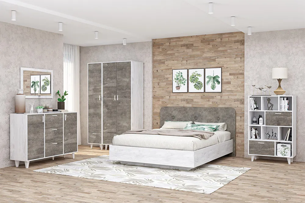 Спальный гарнитур ЭГО Бетон Светлый/Камень Темный Вариант 8