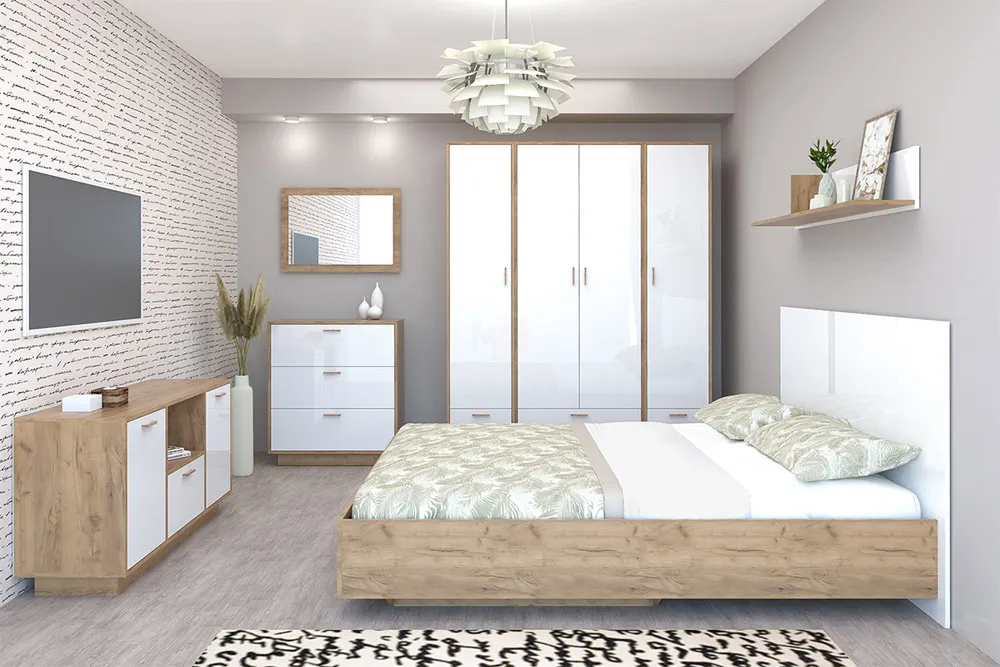 Спальный гарнитур ЭГО Дуб Крафт/Белый Глянец Вариант 1