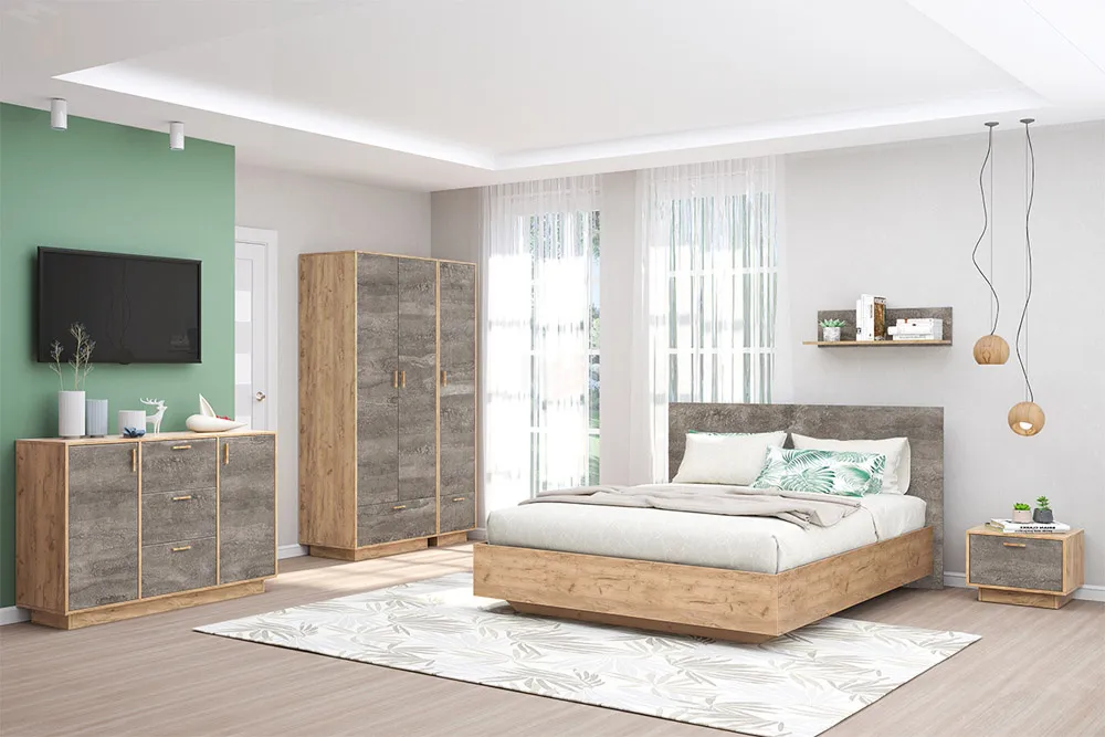 Спальный гарнитур ЭГО Дуб Крафт/Камень Темный Вариант 7