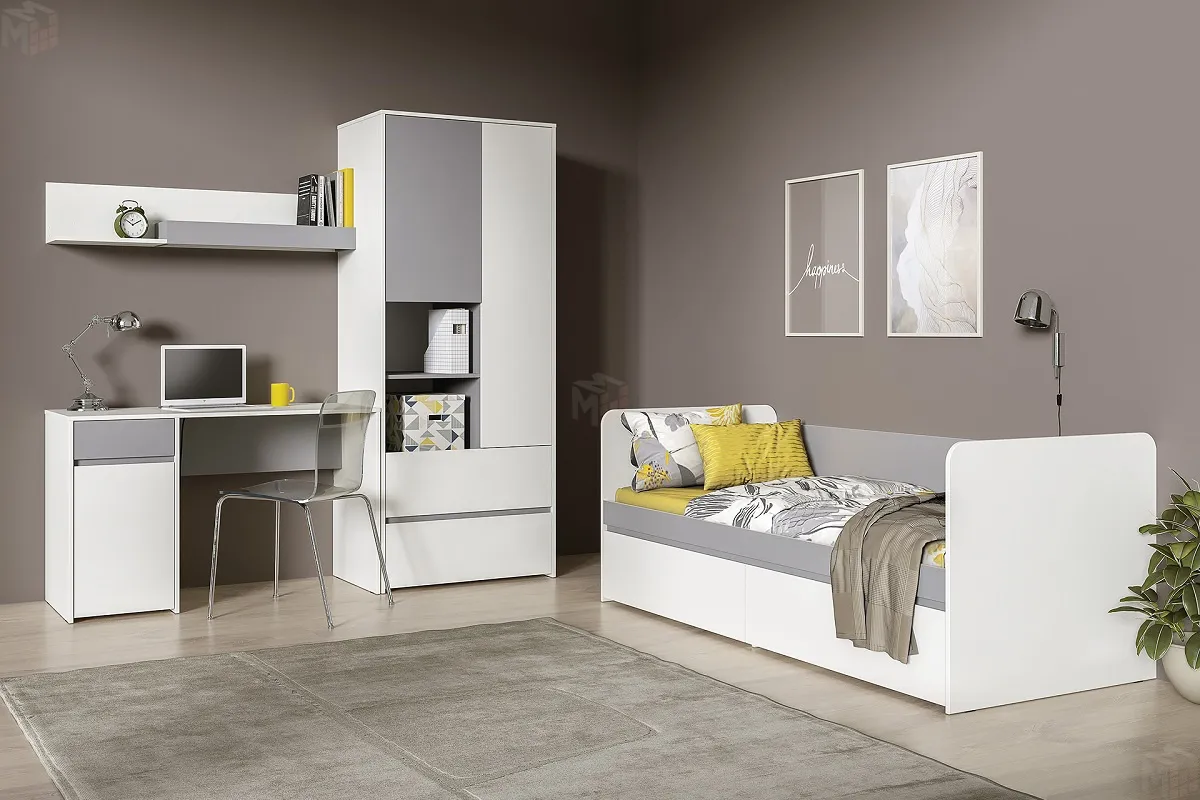 Цвет: Белый шагрень/Стальной серый -