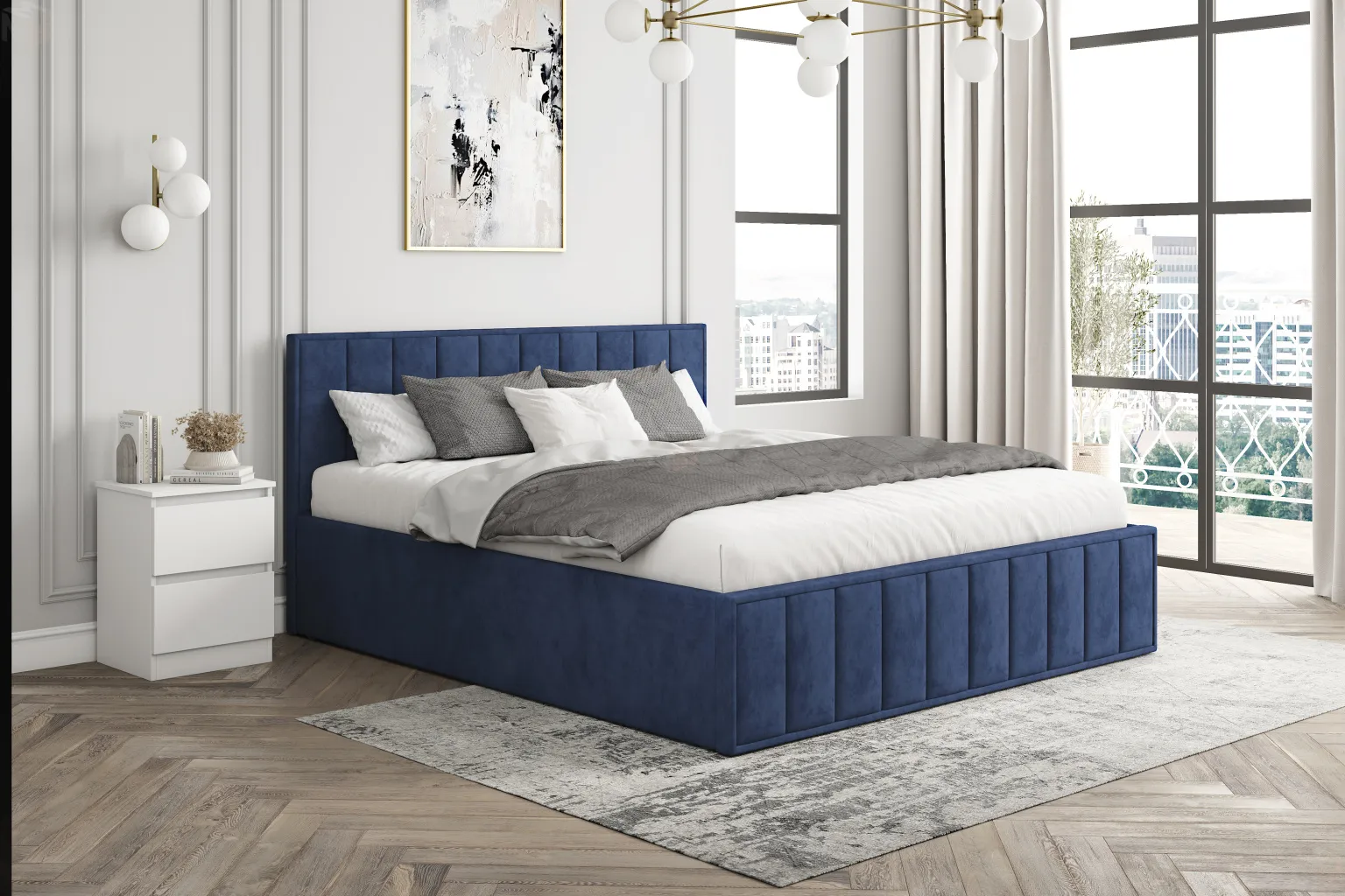 Мягкая кровать Лана 1,8 с подъемным механизмом (синий велюр)