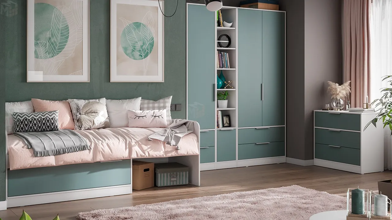 Набор детской мебели Марли №4 Белый, Серо-голубой