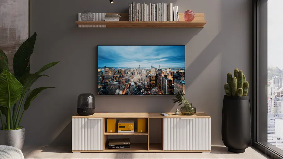 Тумба под ТВ Хилтон - 413.11 Дуб Крафт золотой, Белый матовый