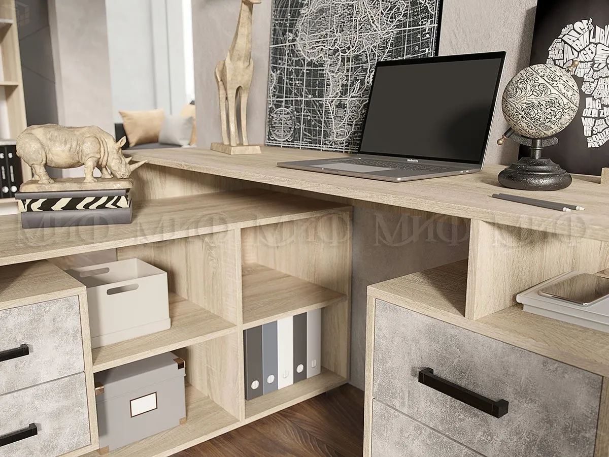 - Стол Неаполь-1 угловой. Размер столешницы 1500*554 мм, ширина тумбы 400 мм. Размер нижней столешницы 1200*490 мм. Направляющие ящиков - шариковые полного выдвижения.