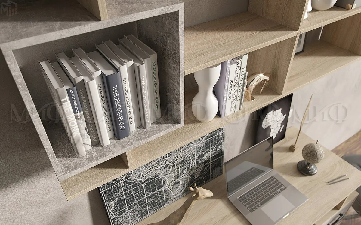 - Стеллаж Неаполь-1 (ширина 710 мм, глубина 365 мм, высота 1992 мм) Корпус мебели выполнен из ЛДСП Дуб сонома, фасады ЛДСП Бетон. -