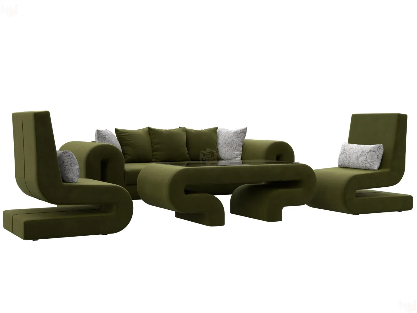 отличается компактными размерами, функциональностью и эргономичностью современного стиля. В состав набора входят прямой нераскладной диван, стол и два кресла. Комплект мягкой мебели "Волна-2"