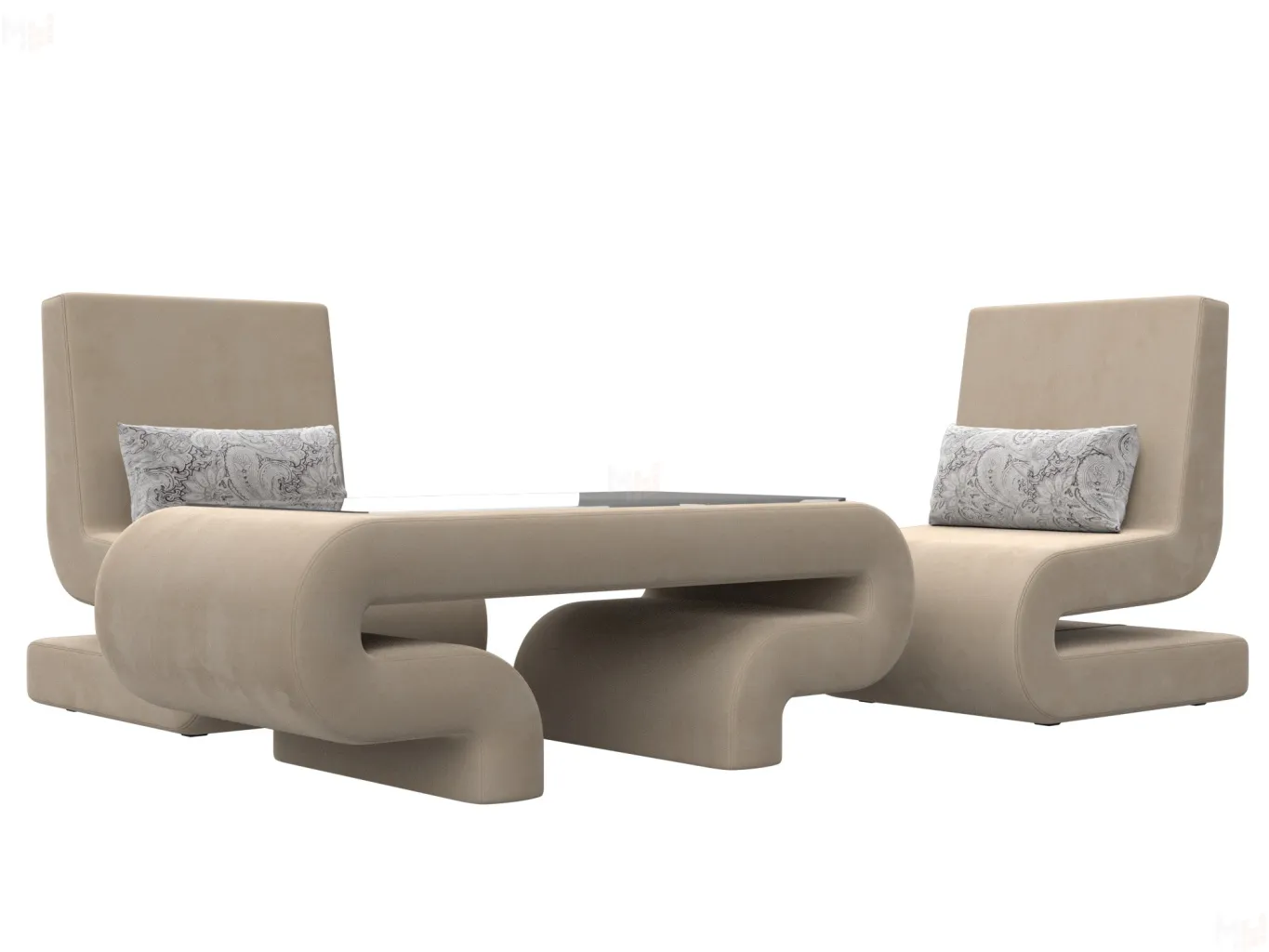 отличается компактными размерами, функциональностью и эргономичностью современного стиля. В состав набора входят обитый тканью стол и два кресла. Комплект мягкой мебели "Волна-3"