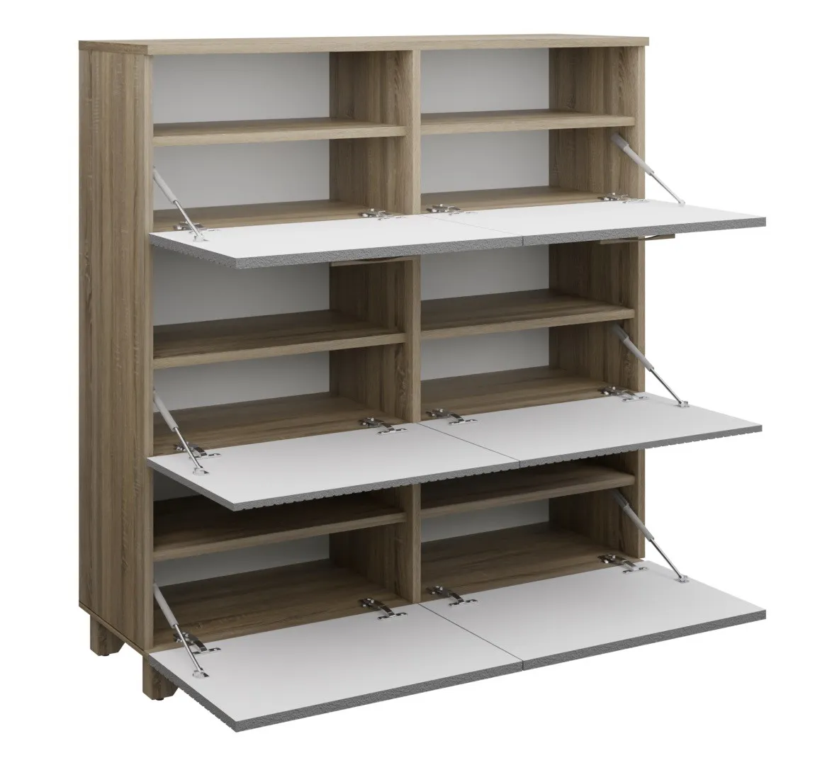 Вместительная обувница Копенгаген — это функциональное решение для прихожей. Модель оборудована шестью откидными ящиками для хранения большого количества обуви. Конструкцией предусмотрены петли с доводчиками для плавности хода створок. Ручки из натурального массива дуба добавят удобства в использовании обувницы. Опоры изделия изготовлены из массива дерева и регулируются по высоте, что позволяет нивелировать неровности поверхности. Возможно сочетание цветов фасада и корпуса.Документы
