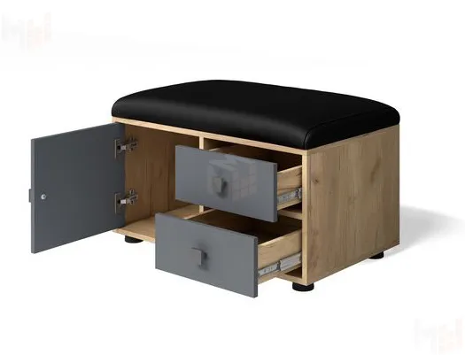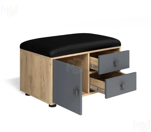 Модель Мини-Лайт МЛ-5 - это небольшая обувница с распашной дверкой для обуви и двумя выкатными ящиками для хранения аксессуаров. Она имеет комфортное мягкое сиденье сверху.