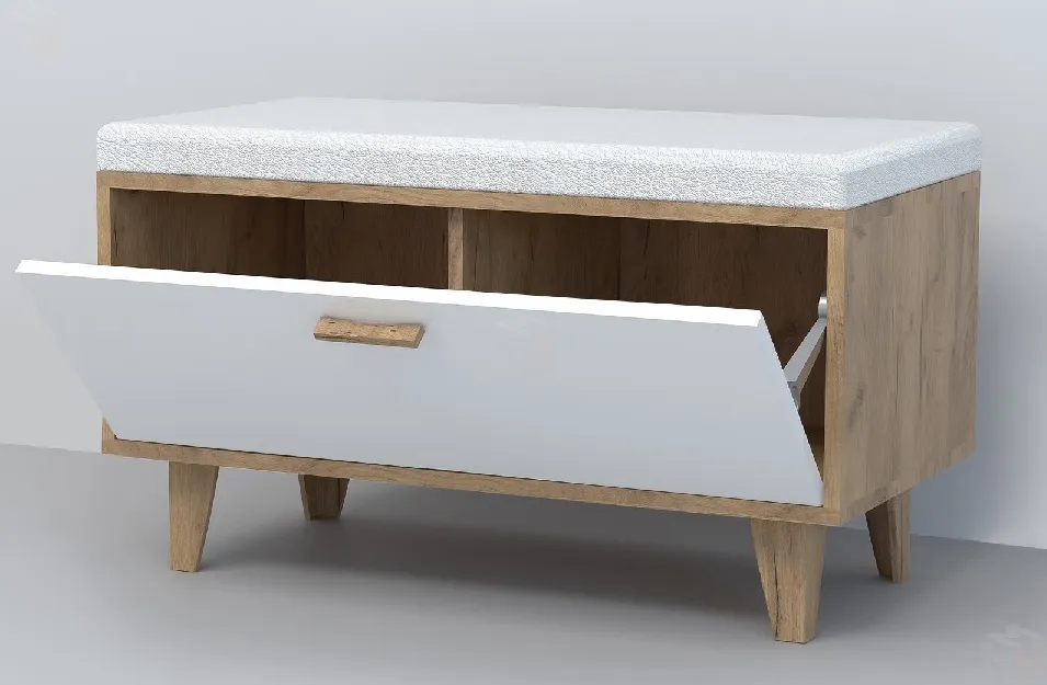 Обувница Об-1 Эго на ножках Дуб Крафт/Белый Глянец
