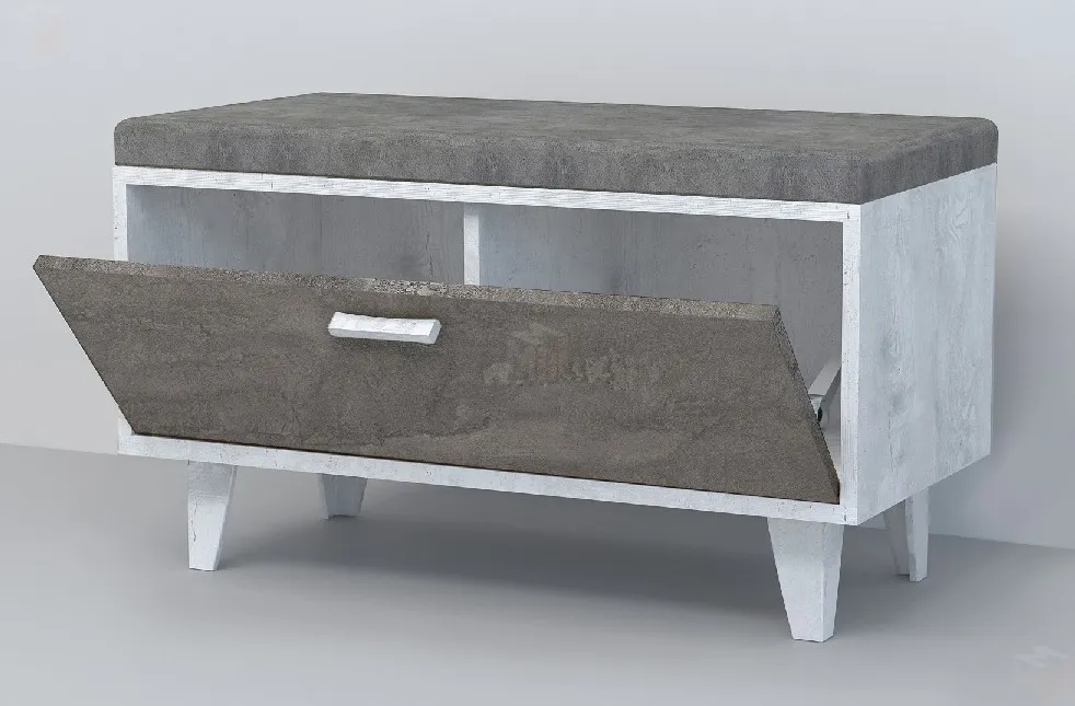 Обувница Об-1 Эго на ножках Бетон Светлый/Камень Темный