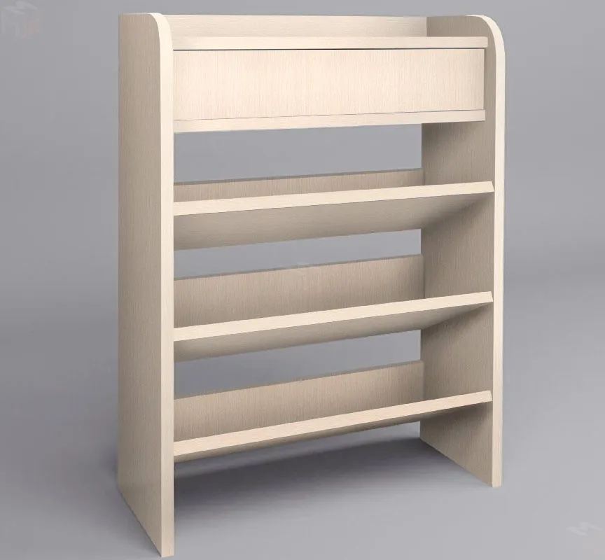 Небольшая удобная обувница оснащена тремя открытыми отделениями для обуви.