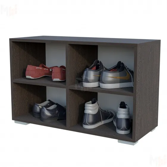 Тумба для обуви оснащена четырьмя полками шириной по 400 мм и высотой по 250 мм.