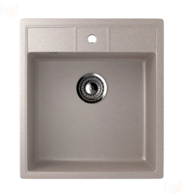Очередная мойка из искусственного камня, прямоугольной формы, которая внешне выглядит как квадратная. Модель с декоративным бортиком препятствующим стеканию воды за периметр мойки, на столешницу.