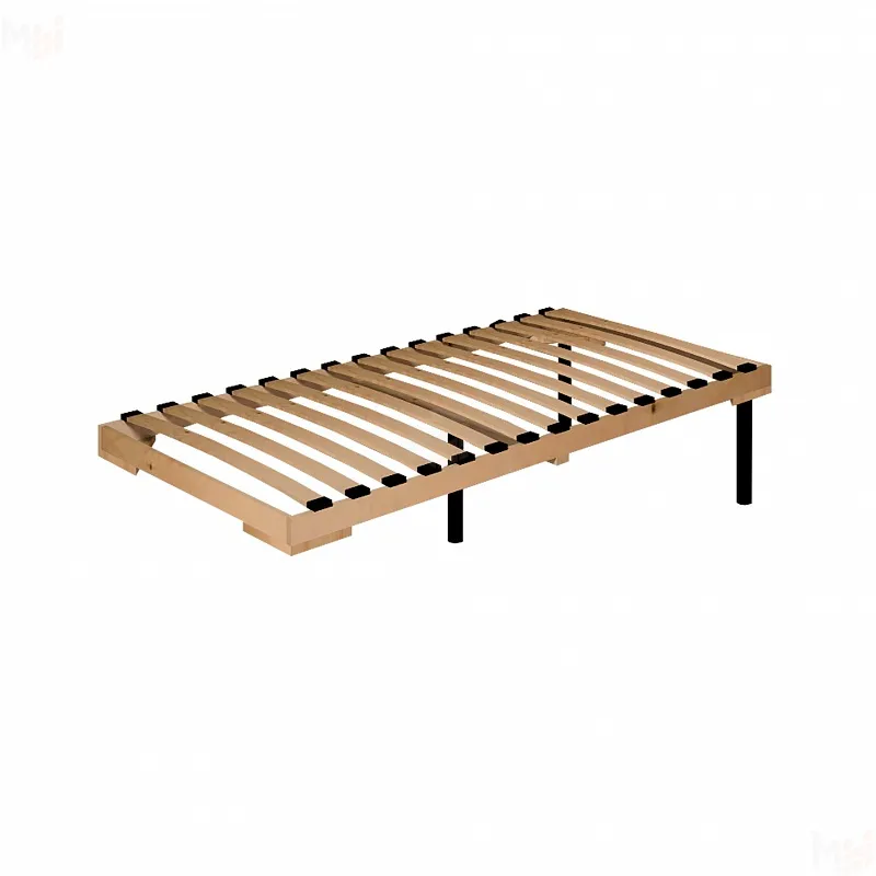 Стационарное основание с гибкими ламелями из фанеры. Прочный и надежный деревянный каркас. Такое основание экологично и выдерживает даже большую нагрузку, чем основание на металлическом каркасе. Сравните: нагрузка на основание в исполнении Дерево - 350 кг с учетом веса матраса, основание в исполнении Металл - 150 кг с учетом веса матраса.