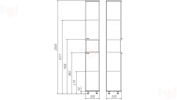 ширина 300 мм, глубина 320 мм, высота 2000 мм
