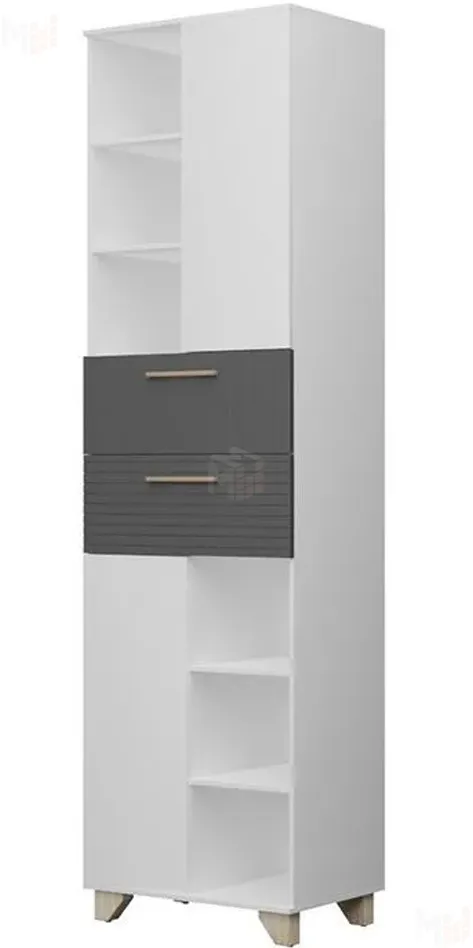Шкаф-пенал — это отличный функциональный элемент для гостиной. Пенал оснащен открытыми полками и полками со створками, что позволяет хранить и предметы декора, и личные вещи, документы. Для плавности хода створок петли оснащены доводчиками. В конструкции пенала имеются ящики, оснащенные шариковыми направляющими полного выдвижения. Современная система «push-to-open» позволяет открывать створки нажатием руки. Ящики оснащены ручками из натурального массива дуба. Ножки, выполненные из массива дерева, имеют регулировку по высоте. Выбор цветов корпуса и фасада позволит найти удачный вариант для интерьера. -