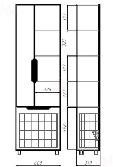 Пенал напольный "Грация" 30 с двумя верхними ящиками В2 левый/правый Домино