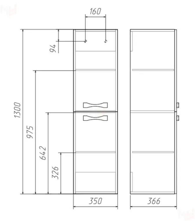 Пенал подвесной 130 без ящика левый/правый Домино.