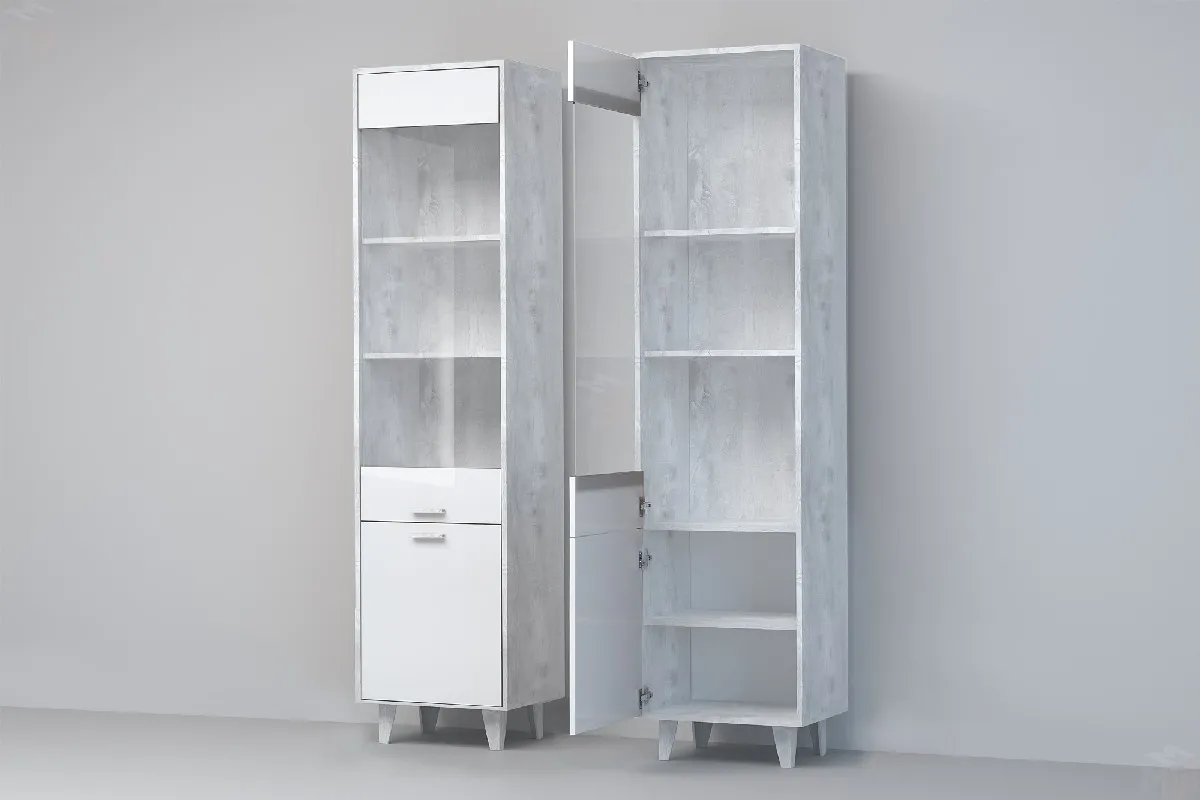 Пенал ПС-1 Эго на ножках Бетон Светлый/Белый Глянец