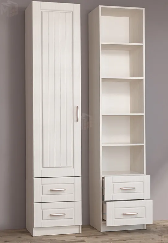 Пенал оснащен двумя выдвижными ящиками и дверкой.