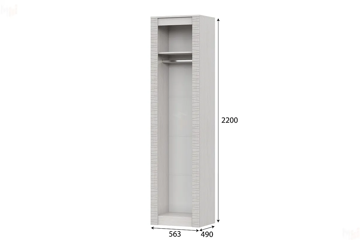 В комплектацию входят одна несъемная полка вверху и металлическая штанга. Пенал можно использовать с угловым шкафом.
