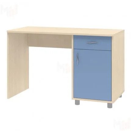 Письменный стол Дельта 15.1 - это удобное рабочее место для детской комнаты. Этот предмет мебели включает в себя вместительный выдвижной ящик, а также за распашной дверью полка, на которых удобно хранить книги и канцелярские принадлежности. Стол универсальный, поэтому при сборке можно выбрать левое или правое расположение тумбы.