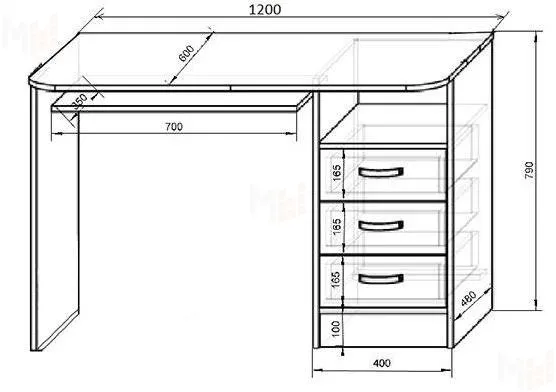 Имеет удобную длинную столешницу с полкой под клавиатуру.